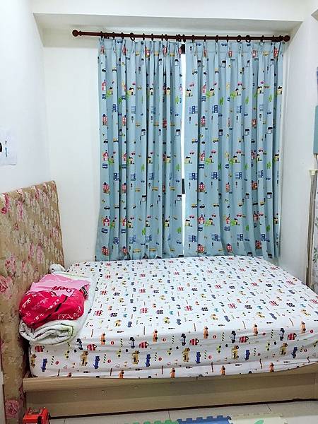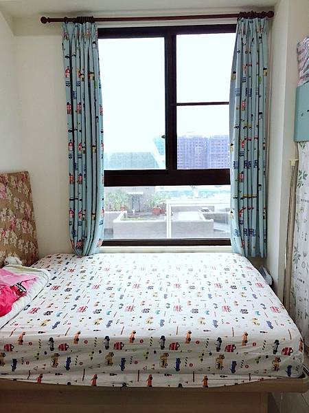 賴先生因工作因素,選擇材質和圖樣的重責大任就交由家中老婆大人和寶貝女兒,女兒說他知道哥哥喜歡車車所以就幫她選了車子圖案的窗簾
